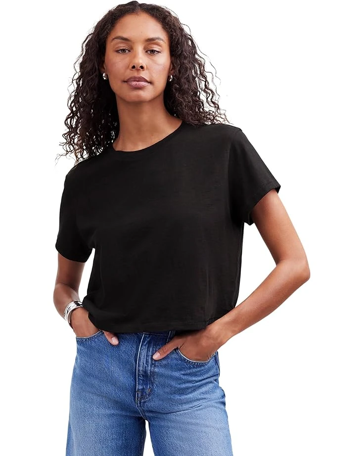- Effortless chic for every day, the Madewell® Bella Tee Slub. This versatile tee features a classic crew neck and short sleeves, making it perfect for layering or wearing solo. The pull-on design ensures easy wear, while the slub texture adds a touch of visual interest. Crafted from soft, breathable fabric, it offers all-day comfort and a relaxed fit.