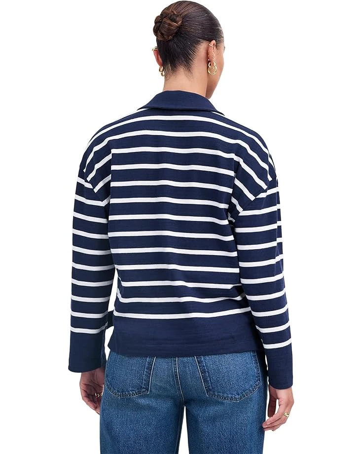 - Bold stripes, effortless style: The Madewell® Chad Rugby Polo, featuring a classic collared split neck for timeless appeal. Long sleeves and a relaxed fit ensure all-day comfort and effortless style, while the bold stripe print adds a sporty touch. This pull-on piece makes it easy to achieve a polished yet laid-back look.