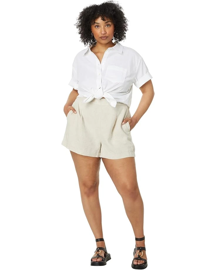 - Indulge in breezy elegance by wearing the Madewell® Clean Pull-On Shorts crafted in 100% linen. Effortlessly chic, they boast a loose fit and high-rise style for supreme comfort and a flattering silhouette. The pull-on closure ensures ease of wear, while the flat front and back elevate their timeless appeal.