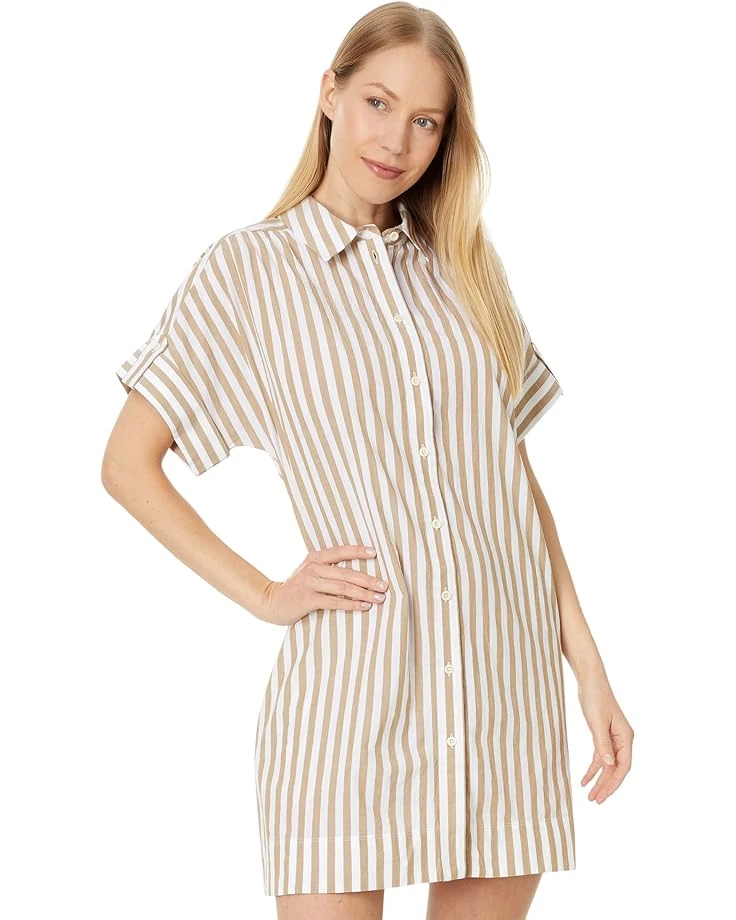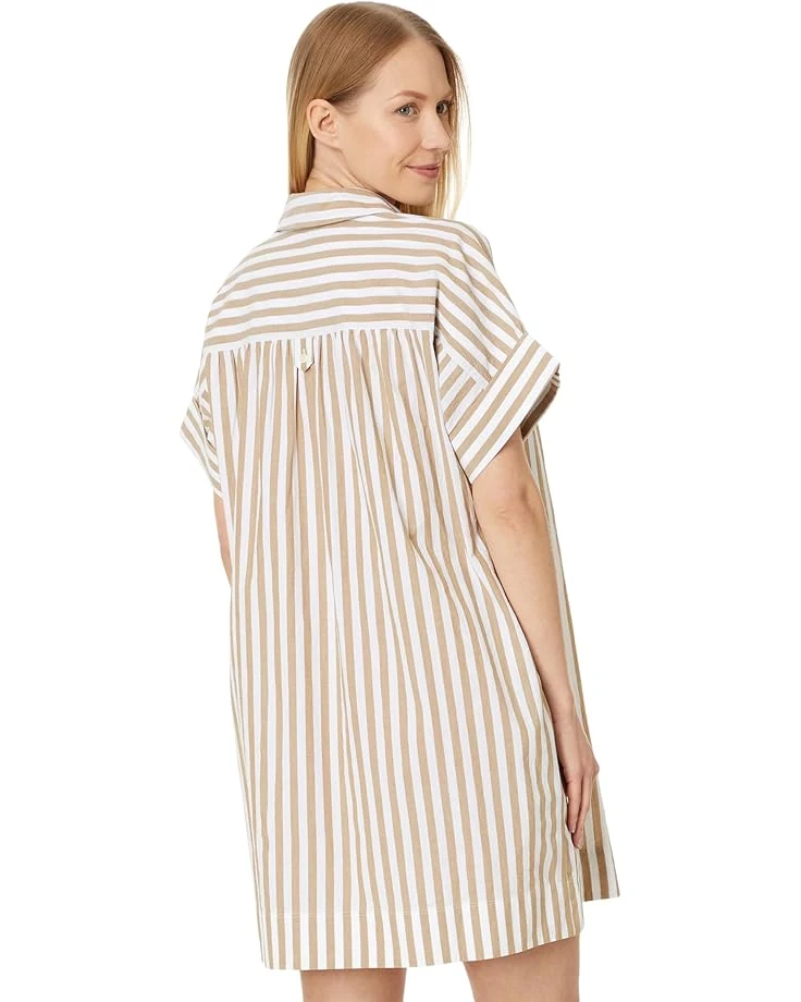 - Elevate your style statement effortlessly by dressing up in the chic Madewell® Collared Button-Front Mini Shirtdress in Striped Dress. Crafted in a mini length silhouette, the dress features a collared neckline, short sleeves, button-front closure, allover striped pattern, and two pockets on the front for added functioanlity.