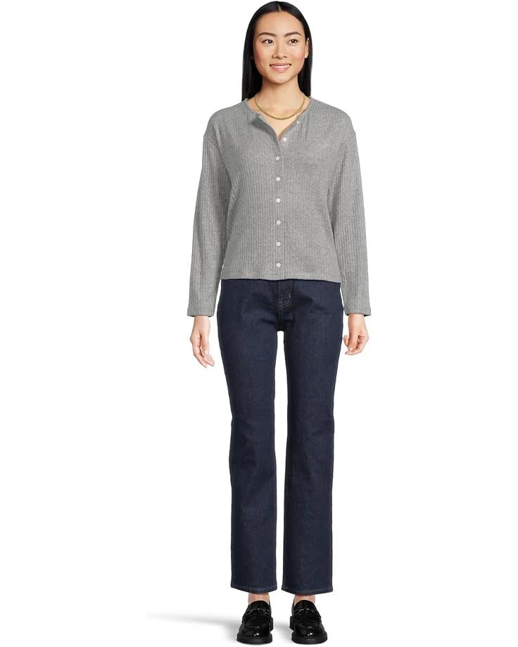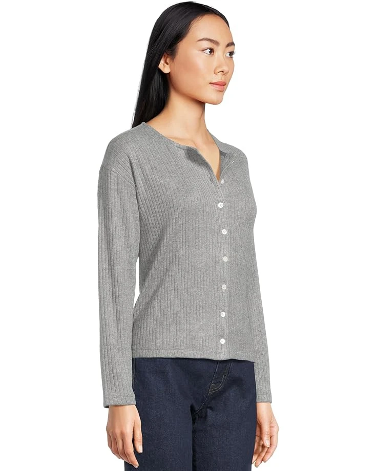 - Supersoft and cozy, this ribbed cardigan features a split crewneck, drop shoulder and relaxed fit. Coming in a thicker knit for a little extra warmth, it’s perfect worn solo or layered.