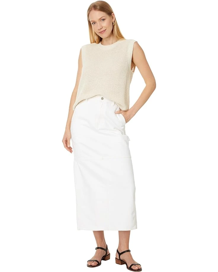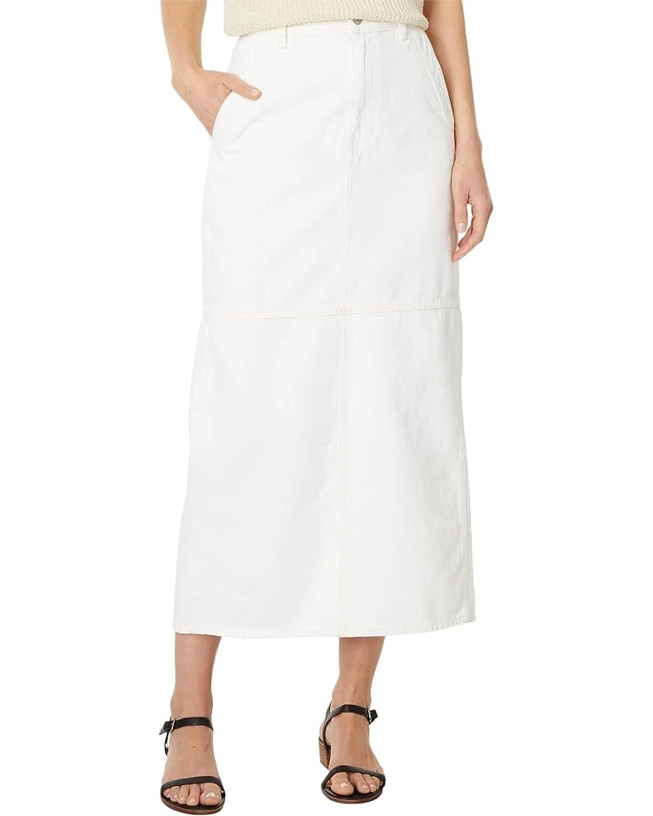 - Let your personality shine in this chic Madewell® Denim Carpenter Maxi Skirt in Tile White. Designed in a shift silhouette, the skirt features a belt-loop waist with high-rise silhouette, two on-seam side pockets, and two back patch pockets to keep you at ease.