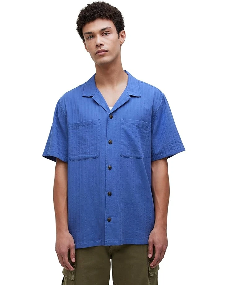 - Express timeless sophistication with this simple yet charming Madewell® Easy Short-Sleeve Shirt in Stripe design. This button-up shirt features a notched collar, short sleeves, front chest pockets, and a straight hemline.