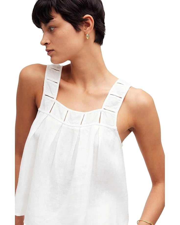 - Stay breezy and comfortable wearing the Madewell® Embroidered A-Line Top in 100% Linen. The cutout embroidery at the neckline offers a stylish appeal while the lightweight linen fabric takes your comfort to the next level. This short top is styled with a square neckline, ladder trim detail, and a sleeveless style. Get ready for a comfortable day out wearing this embroidered top.