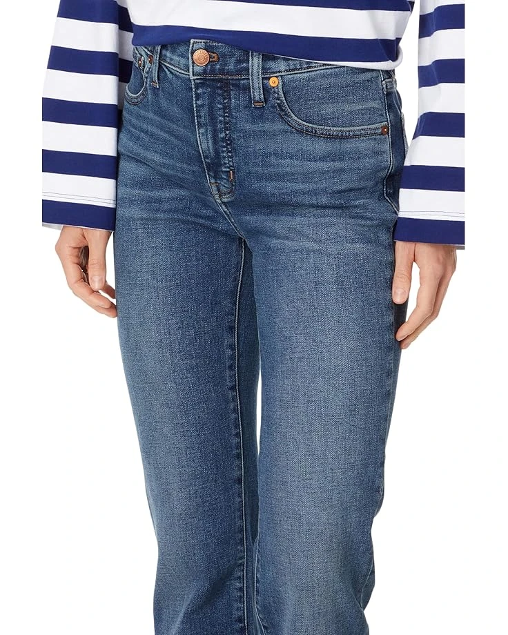 - Elevate your classic wardrobe styling in the Madewell® Full-Length Kick Out in Devito Wash jeans. Featuring a button front with a zip-fly closure, belt loop waist, classic five-pocket design, contrast topstitching and metal hardware.