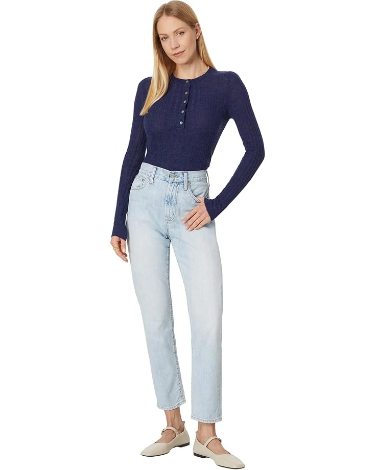 - Find the perfect layer of cozy warmth in the Madewell® Lightweight Alpaca Madison Henley Pullover. This pull-on style top features a crew neckline, button front, long sleeves, and a straight hem.