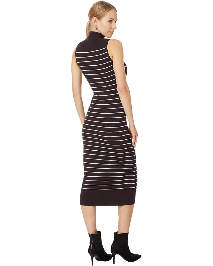 - Flatter your figure in the body-skimming Madewell® Mandrell Sweaterdress Stripe – Snowy. This pull-on style dress features a mock neckline in a sleeveless design, allover stripe detailing, ribbed knit, and a straight hemline.