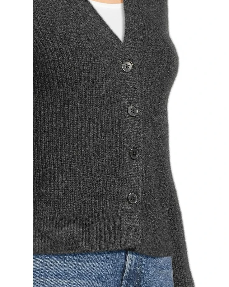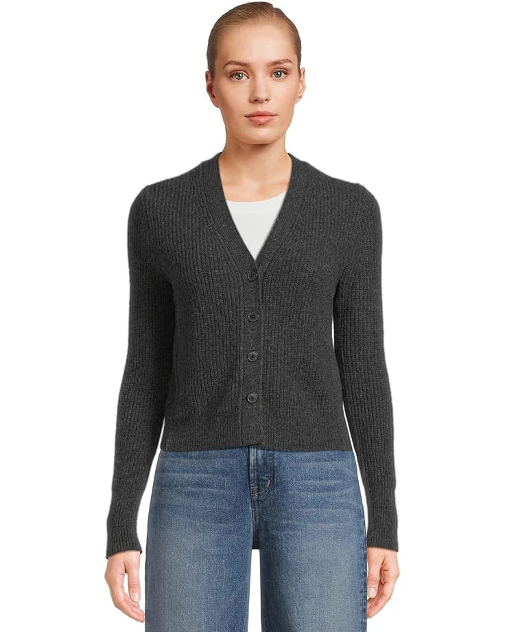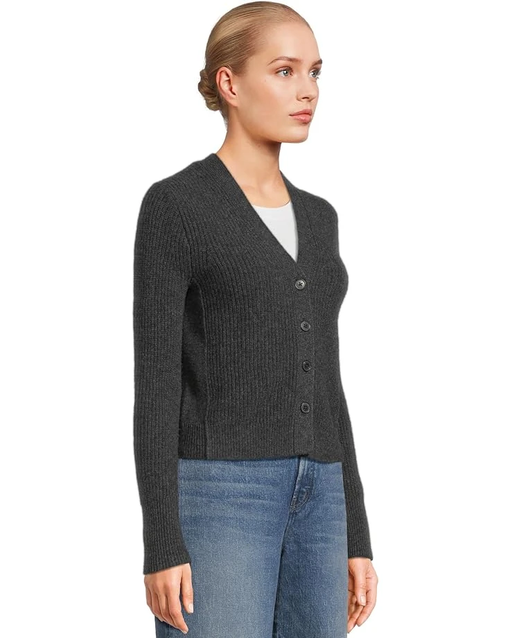 - A lofty and luxe rib-knit cardigan with a V-neck and flattering shrunken fit. Crafted from a supersoft wool blend, it’s perfect for layering or wearing solo with your favorite jeans or skirt.
