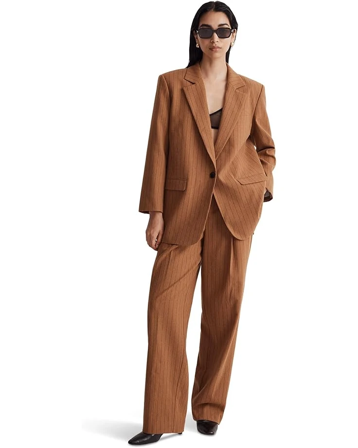 - Add the trendy Madewell® Oversized Blazer in Pinstripe to your wardrobe.