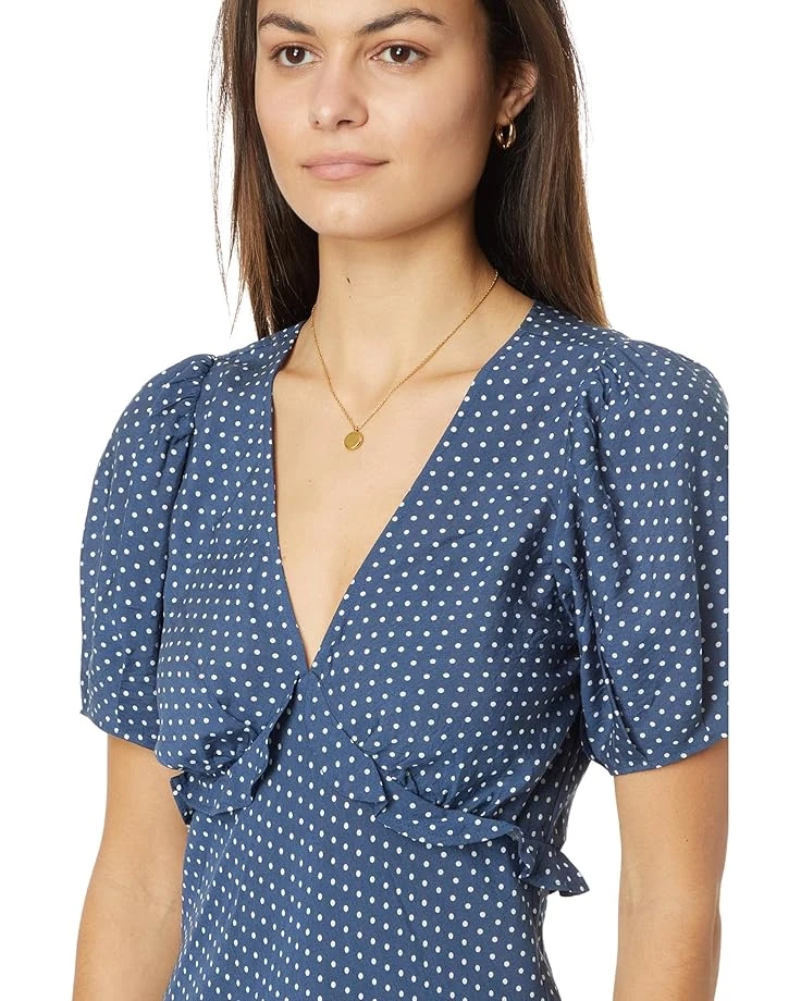 - Let your sumptuous style define timeless grace as you wear the Madewell® Puff-Sleeve Ruffle Mini Dress in Polka Dot. It features a V-neckline with short sleeves, ruffled details along the bodice, zippered center back closure, and bias-cut skirt.
