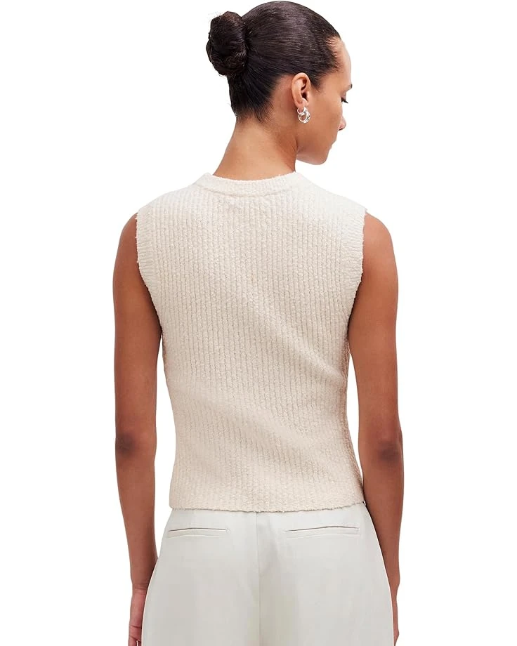 - Feel cozy comfort and exude an uber-chic style wearing Madewell® Seneca Cotton Boucle Tank, which can be worn alone or as a layering sweater over shirts. The pull-on style sweater features a knit construction, crew neck, and a sleeveless design.