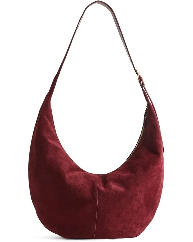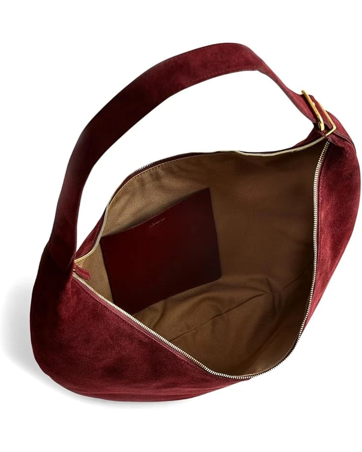 - Effortless elegance meets functional flair, carry Madewell® Suede Essentials Slouch Hobo. Crafted from luxurious suede with a chic suede lining, this hobo bag features a comfortable shoulder strap for easy wear. The zippered closure ensures your belongings are secure, while the two spacious compartments and additional pocket keep you organized on the go.