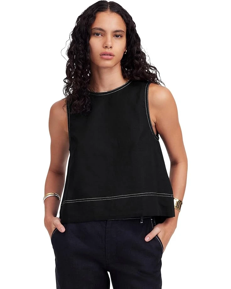 - The Madewell® Suki Top – 100% Linen is a lightweight and breezy piece, designed with a classic crew neck and a sleeveless design. The keyhole button closure adds a subtle, sophisticated detail, while the pull-on style ensures ease and simplicity.