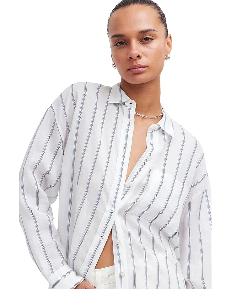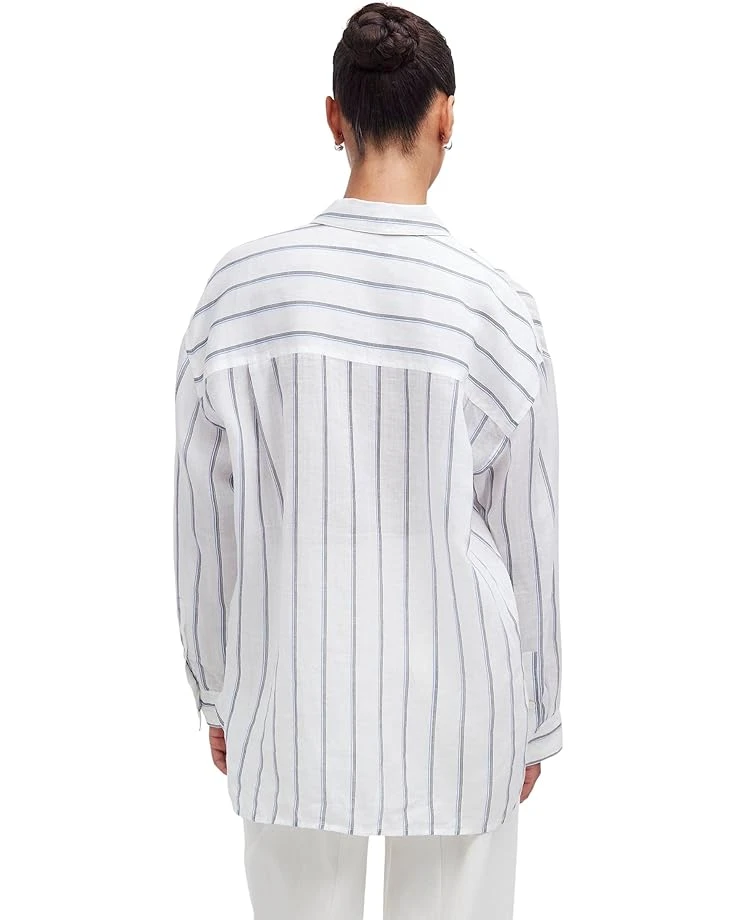 - Elevate your look with the understated elegance of this button-up Madewell® The Oversized Shirt in Stripe Ramie. This regular fit shirt features spread collar, long sleeves with dropped shoulders and buttoned cuffs, oversized patch pocket on the left chest, back yoke design, and shirttail hemline.