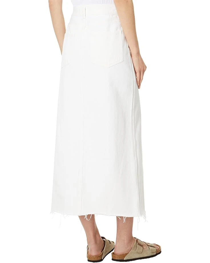 - Revamp your denim wear by styling Madewell® The Rilee Denim Midi Skirt in Tile White. Upgrade your style with its trendy mid-rise fit and zip-fly with button closure. Enjoy the freedom of movement with the front slit cut and convenient belt loops on the waist. Stay organized with its four-pocket styling while flaunting a chic below-the-knee length.