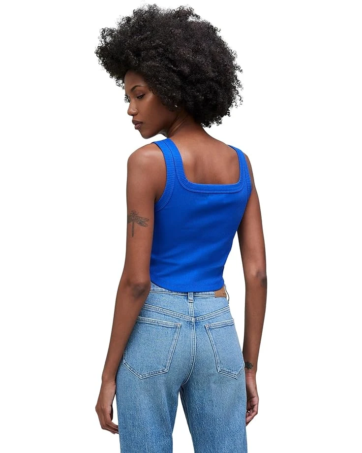 - Master your fashionable move in utmost comfort wearing the soft Madewell® The Tailored Crop Tank in Sleekhold. It features a body-hugging silhouette with a front-back square neckline, sleeveless design, and slightly curved hem.